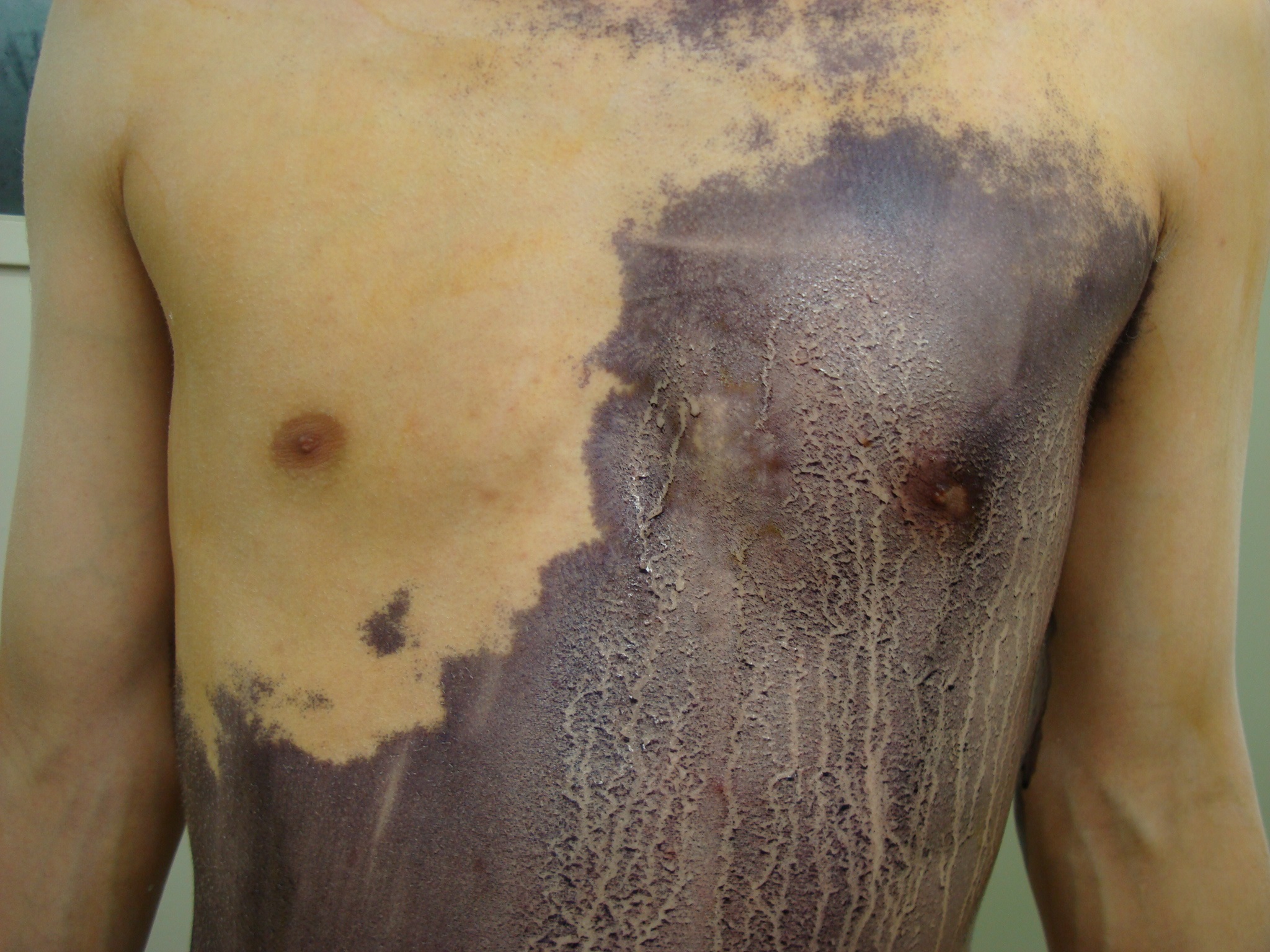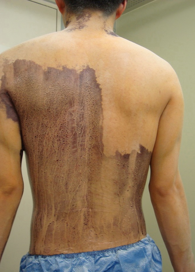 、手術後にもかつ度を続け、胸・背中・腰・臀部・大腿等に