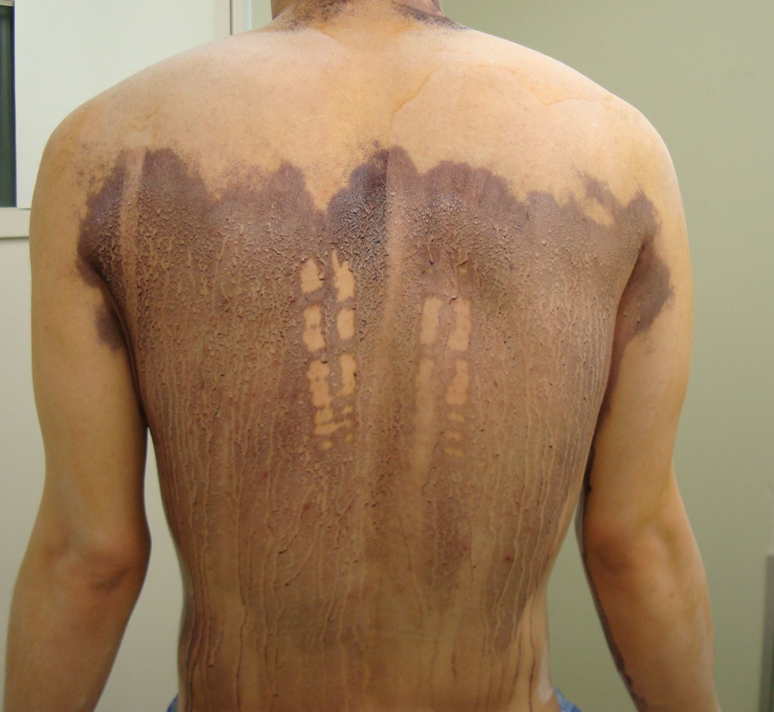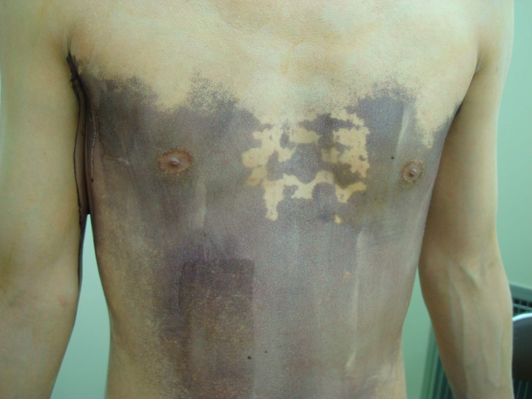 、手術後にもかつ度を続け、胸・背中・腰・臀部・大腿等に